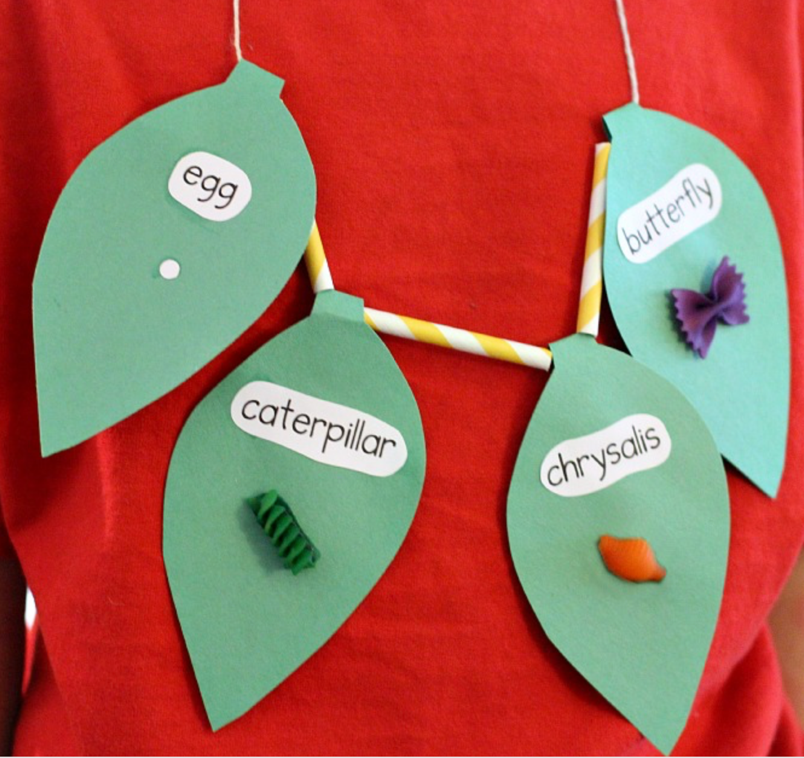 Bố mẹ cùng trẻ thực hành ghi nhớ vòng đời của con bướm với 4 giai đoạn: bướm đẻ trứng, trứng nở ra sâu bướm, sâu bướm tạo kén và cuối cùng biến thành một con bướm xinh đẹp.