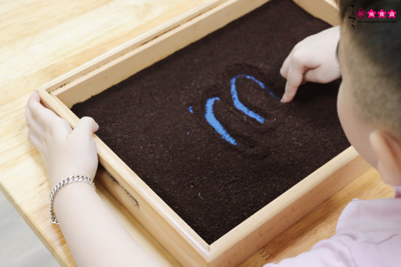 Khi vốn hiểu biết của trẻ tăng lên, trẻ sẽ được giới thiệu đến kỹ năng viết và đọc, sử dụng các học cụ đặc trưng như: Chữ cái nhám (sandpaper letters); Hộp ngữ âm (sound boxes); Bảng chữ cái di động (moveable alphabet)… được giới thiệu nhằm giúp trẻ nhận biết và tạo ra âm chữ cái, xây dựng nền tảng vững chắc cho việc đọc và viết sau này. Ngoài các bộ giáo cụ, toàn bộ môi trường lớp học, cách giáo viên trò chuyện, sách truyện, đều là “giáo cụ ngôn ngữ”. Montessori ưu tiên việc học thông qua trải nghiệm hơn là giảng dạy trực tiếp. Khác biệt lớn với phương pháp truyền thống, trẻ trong lớp học Montessori ưu tiên học qua trải nghiệm các giác quan (sờ – nhìn – nghe). Ví dụ: Trẻ học hình dạng và âm của chữ cái bằng cách dùng tay cảm nhận theo nét chữ nhám, giúp việc học trở nên sinh động và ghi nhớ lâu hơn. Nhờ sự kết hợp giữa hoạt động có cấu trúc và khám phá tự định hướng, Montessori tạo nên trải nghiệm học ngôn ngữ vừa hiệu quả vừa thú vị.