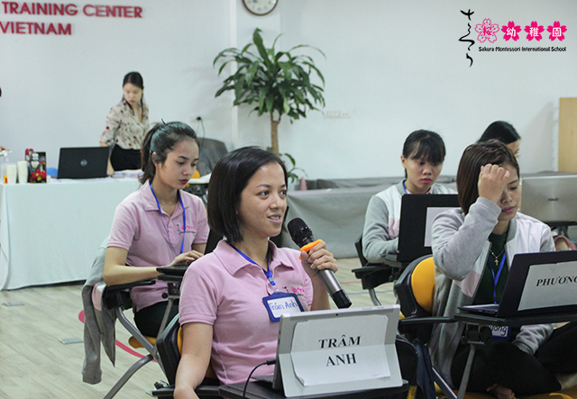 Cô Hoàng Tuyên, phụ trách chương trình Montessori tại Sakura Schools cho biết: “Khóa học lý thuyết diễn ra liên tục trong 5 tuần từ thứ 2 đến thứ 7 với sự hỗ trợ và định hướng rõ ràng, thời khóa biểu khoa học giúp các giáo viên thỏa mãn và lĩnh hội được nhiều kiến thức về triết lý giáo dục Montessori, cách sử dụng giáo cụ Montessori,cách sắp xếp, bố trí lớp học, cách thức giao tiếp hiệu quả với trẻ, …