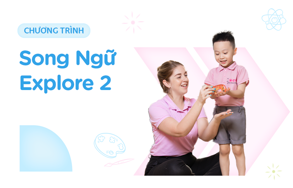 Học sinh chương trình Song ngữ Explore 2 được cung cấp môi trường học tập kết hợp giữa Tiếng Anh và Tiếng Việt với chương trình học đa dạng, giúp con phát triển toàn diện về trí tuệ, thể chất và tinh thần cũng như bồi dưỡng các kỹ năng của một công dân toàn cầu.