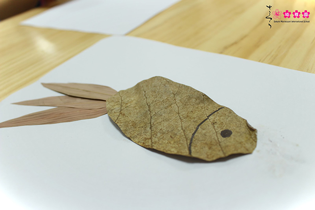 Hình ảnh được ghi lại trong giờ học tạo hình lớp Blueberry “Tạo hình con vật từ lá cây mùa Thu”.
