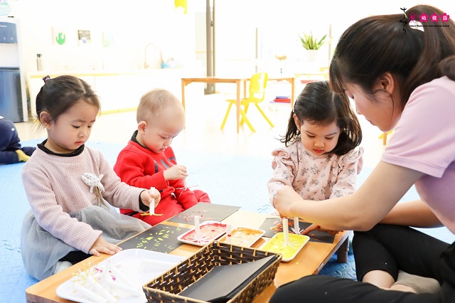 Các bạn nhỏ lớp Calla thích thú với “tác phẩm” pháo hoa của mình